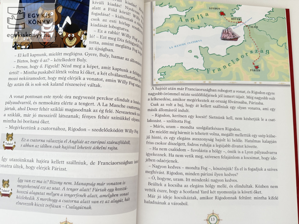 Willy Fog, a tekintélyes londoni úriember pedig közben – inasával, Rigodonnal – már úton volt a pályaudvar felé, hogy elinduljon a nagy és kockázatos utazásra, amelyre feltette egész vagyonát. Nem is sejtette, milyen rendkívüli kalandok várnak rá tengeren és szárazföldön, sivatagban és őserdőben. Azt sem tudta, hogy lesznek majd, akik mindent elkövetnek azért, hogy vállalkozása ne sikerüljön…