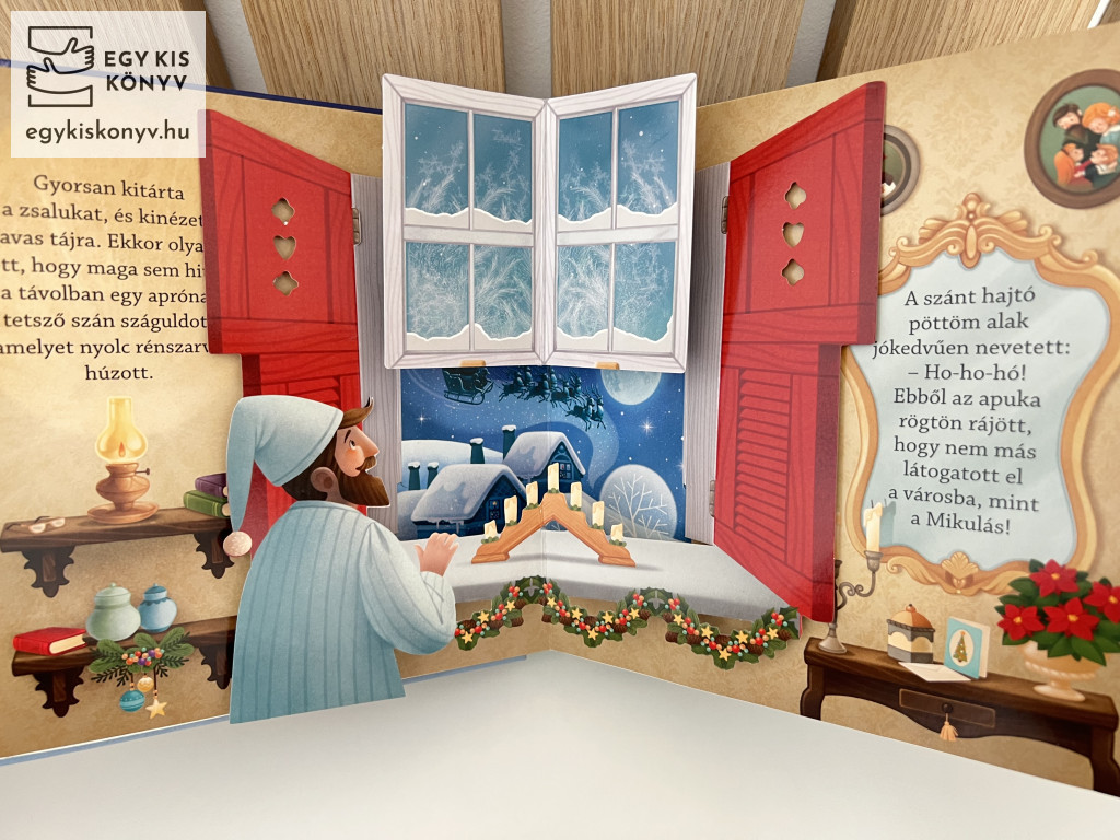 Egy varázslatos téli éjszakáról szól ez a meseszép kötet, amelyet a térbeli elemek tesznek különösen látványossá. A gyerekek megcsodálhatják a rénszarvasokat, az ajándékokkal teli zoknikat és a Mikulás szánját, amely átszeli az éjszakai égboltot. Nincs jobb karácsonyi ajándék egy ilyen gyönyörű könyvnél!