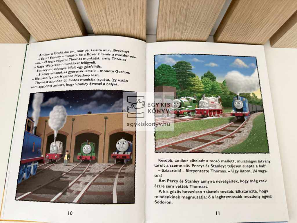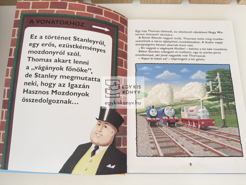 Ebben a kötetben a következő kalandokról olvashatsz: Thomas rossz néven vette, hogy amikor megsérült, az újonc Stanley vette át a helyét a Nagy Waterton-i munkálatokban. Végül rájött, mennyire félreismerte Stanleyt. Megtudhatod még, miért volt szomorú Colin, a daru, és hogy sikerült a barátainak meglepni őt, hogyan barátkozott össze Thomas a beképzeltnek hitt mozdonnyal, Hankkal, és mennyire örült Toby az új gőzkocsinak, Florának. A könyv lapjain találkozhatsz a pisze, háromkerekű teherautóval, Madge-dzsal is, aki néha elfeledkezik saját feladatairól.